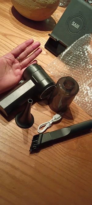 You get a brush nozzle, slit nozzle, the handheld vacuum, and a USB Type-C charging cable so you can clean multiple surfaces right away.